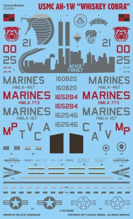 160820/21, mit Sondermarkierungen zur Ehrung des 11. September 2001 (FDNY 9/11 Tribute Scheme), HMLA-169 „Vipers“, Afghanistan 2012 und HMLA-467 „Sabres“, 2015;