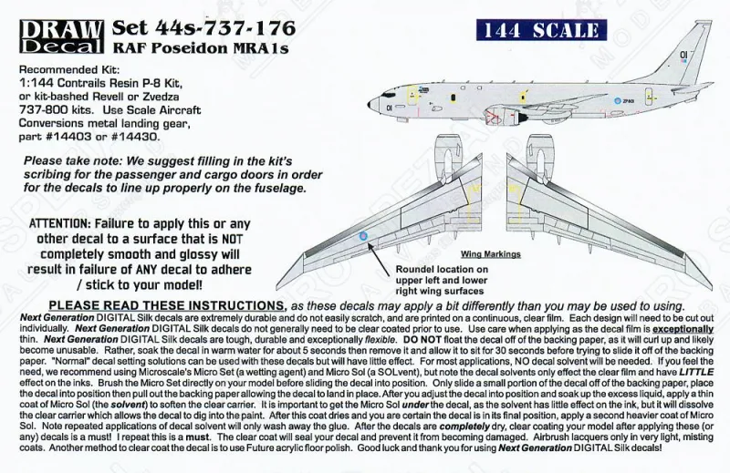 Wichtiger Hinweis: Gedruckt auf extrem dünnem, durchgehenden Trägerfilm ist nach dem Aufbringen der Abziehbilder ein farbloses Finish des Modells in mehreren dünnen, nebelartigen Schichten (nur mit der Spritzpistole!) unerlässlich!
