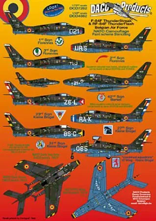 RF-84F Thunderflash: No. 42 Sqn, Bierset; alle Maschinen belgische Luftwaffe; Kokarden, Codes und Stencils für Maschinen in NATO-Tarnanstrich; farbige Dekorationsanleitung