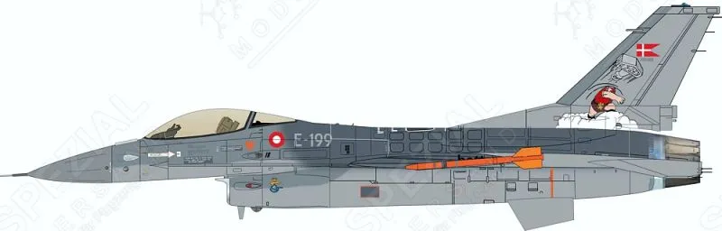 E-199, mit Sondermarkierungen „Thor’s Hammer“ für die Airshow-Saison 1998, Esk 727, dänische Luftwaffe, Skrydstrup, 1998;