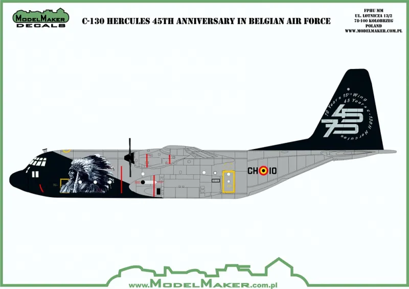 • CH-10 Jubiläumsanstrich „45 Jahre C-130H Hercules / 70 Jahre 15th Wing“, No. 20 Sqn „Blue Sioux“, belgische Luftwaffe, Brüssel/Melsbroek, Oktober 2018