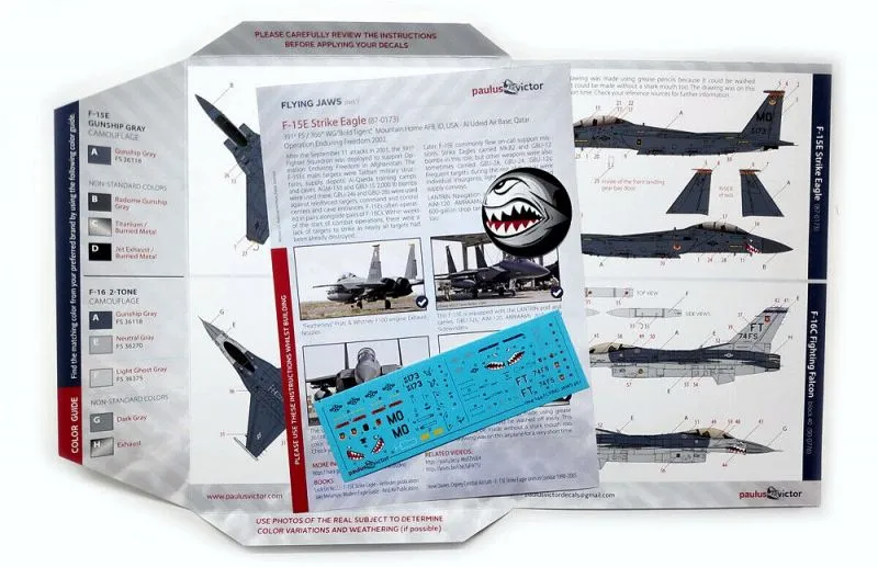 including: background information and aircraft detail guide; photo quality profiles and instructions; small sticker (shark mouth); recommended literature and related video links