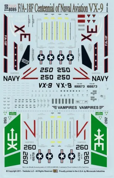 beide Maschinen mit Sondermarkierungen „100 Jahre amerikanische Marineflieger“, Februar 2011; inklusive Warn- und Wartungshinweisen für zwei Maschinen