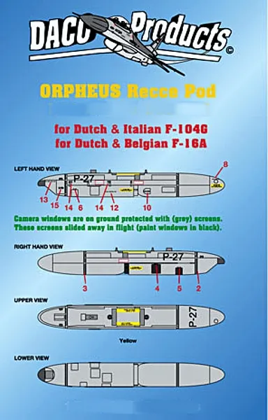 1 piece, including decals; for Royal Netherlands Air Force F-16A Fighting Falcons and F-104G Starfighters, Italian Air Force F-104S Starfighters as well as temporarily for Belgian Air Force F-16A Fighting Falcons