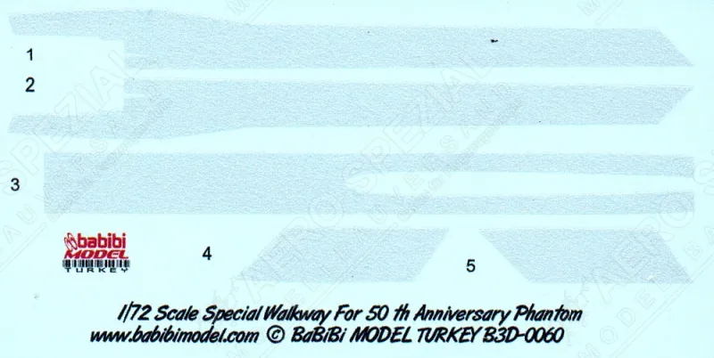 • 3D-gedruckte Walkways für die Jubiläums-Phantom der türkischen Luftwaffe (siehe BBT72422 – separat erhältlich); realistische und maßstäblich reproduzierte Oberflächenstruktur; für ein Luftfahrzeug