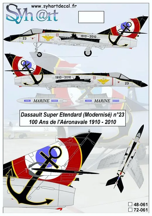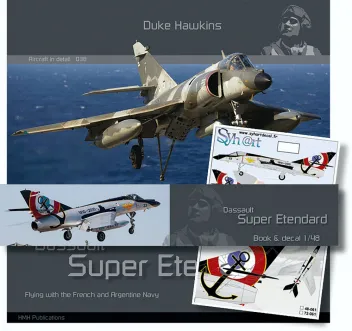 116 Seiten im Format 24 x 24 cm mit mehr als 200 Farbfotos (Action sowie Details von Cockpit, Rumpf, Waffen, Wartung usw.) der Super Etendard im Dienst der argentinischen und französischen Marine; englischer Text; inklusive Syhart Decal 48061 (Jubiläumsanstrich „100 Jahre Marineflieger 1910-2010“, 17F, französische Marine, Landivisiau, 2010); streng limitierte Auflage von 100 Sets!