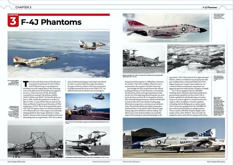 • 84 Seiten Format DIN A4; Entwicklung und Beschreibung der F-4A-S und RF-4B Phantom II im Dienst der U.S. Navy und U.S. Marines mit 88 farbigen und 31 Schwarzweiß-Actionfotos; 16 Farbseitenrisse; „Walk Around“-Kapitel mit 25 farbigen Detailfotos; Listen mit Phantom-Varianten und -Staffeln; Modellbaureports der Phantom von Academy, Hasegawa, Tamiya und Zoukei-Mura in 1:48; englischer Text