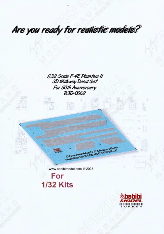 • 3D-gedruckte Walkways für die Jubiläums-Phantom der türkischen Luftwaffe (siehe BBT32420 und BBT32421 – separat erhältlich); realistische und maßstäblich reproduzierte Oberflächenstruktur; für ein Luftfahrzeug